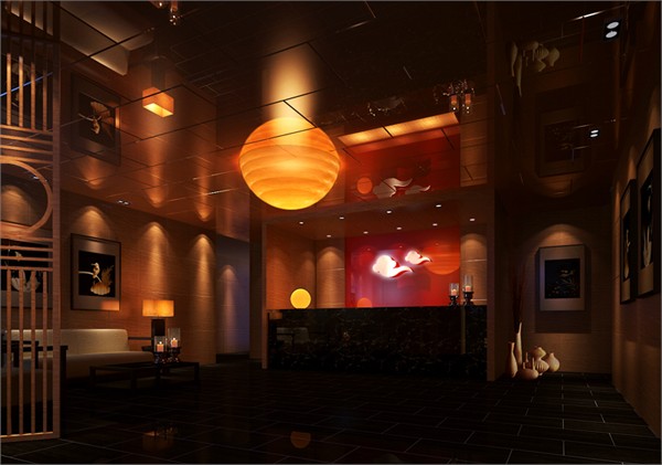 以简约的点(圆,如圆形灯具等)、线(如条形灯带等)、面(天花,反光灯槽等)相结合,颜色和造型上力求达到阴阳平衡,在意境上寻求禅味的平和精神。灯光的处理上以辅助的点光源为主角,考虑到空间的能量守恒,使用了反光灯槽来平衡照明;材质上选用了自然环保的石材、木头、藤麻质地的墙纸等,力求养性亲和;颜色以黑色、灰色为主题,局部以低彩度的茶色、淡紫色相协调,营造空间的静谧和高雅。静以修身、闲以养性,把都市的繁闹与喧嚣都抛诸一空。
